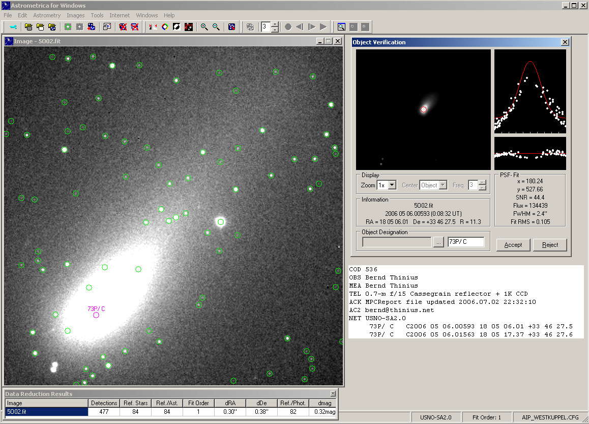 06.05.2006 01:05bis 01:12 und 01:22 bis 01:25 MESZ Bildgröße ca.8x7 Bogenminuten Aufnahme 6x10sec und 3x20sec