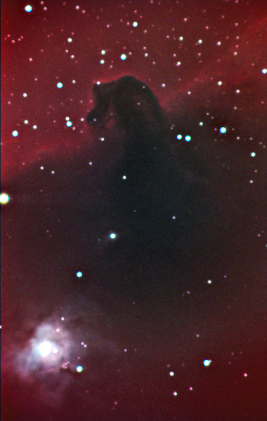 IC434 mit C14 und ST8XME f/5,6 mit Fokalreduce-Flattener 0.5x Optec, 16x4min Hα, 50x2min Lumineszenz 19.01.2012 Potsdam/Bornim (IOP), |