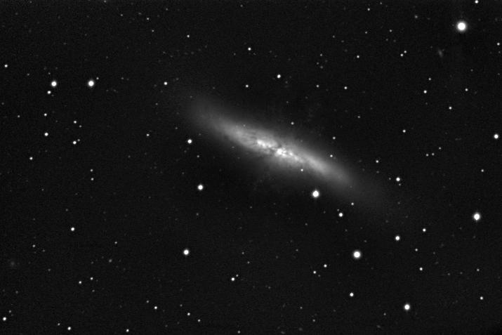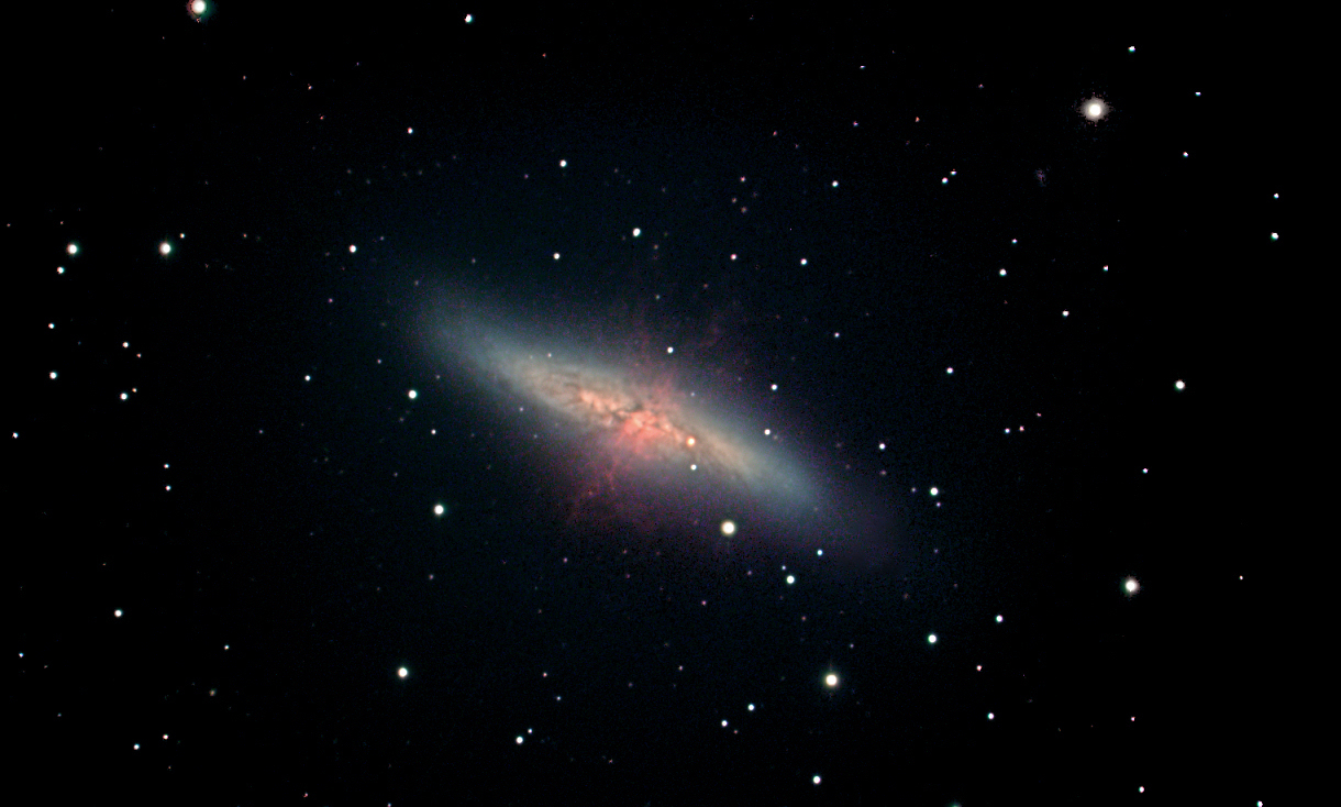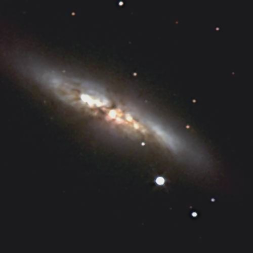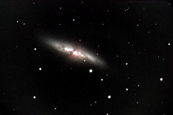 M82 = NGC 3034 irreguläre Galaxie, Helligkeit 9.2mag, Entfernung 11 Mill. Lj, gr. Halbachse 10.5'