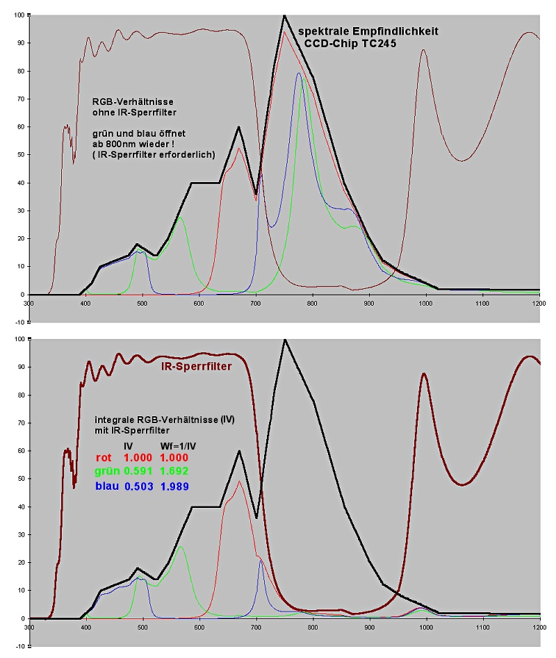 Integraler Anteil der Transmissionswerte der RGB - Filter
