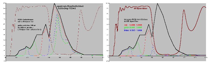 Der größte Intensitätseinfluss wird verständlicherweise durch das Farbfilter selbst und die spektrale Empfindlichkeit unseres Photonendetektors, des CCD-Chips, bestimmt.