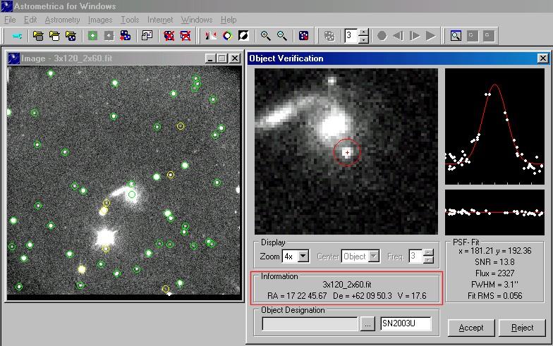 Aufnahme mit dem 70cm Teleskops des Astrophysikalischen Instituts in Potsdam-Babelsberg mit stickstoffgekühlter CCD-Kamera TK1024-01 (SITe 1k x 1k) |