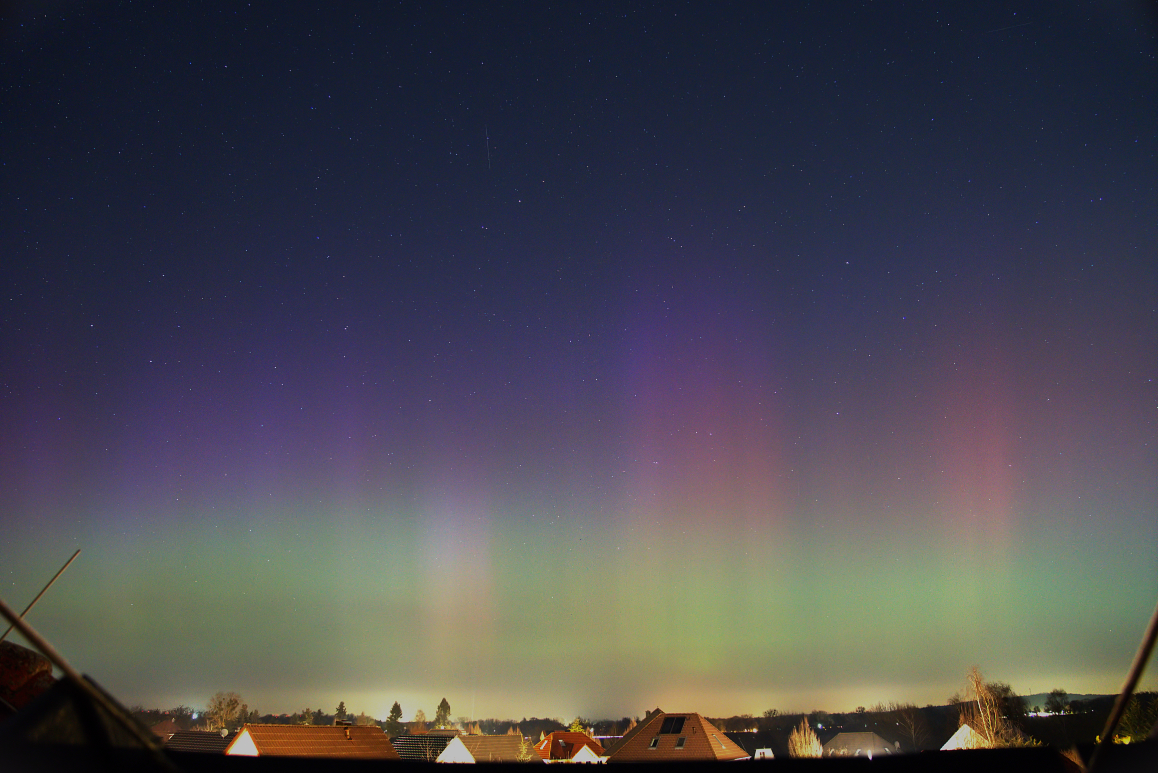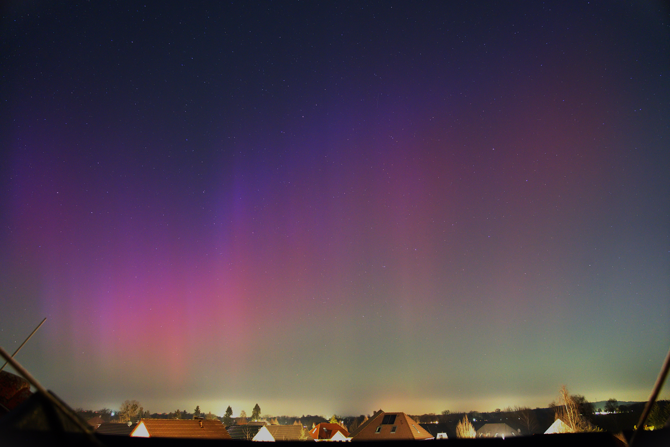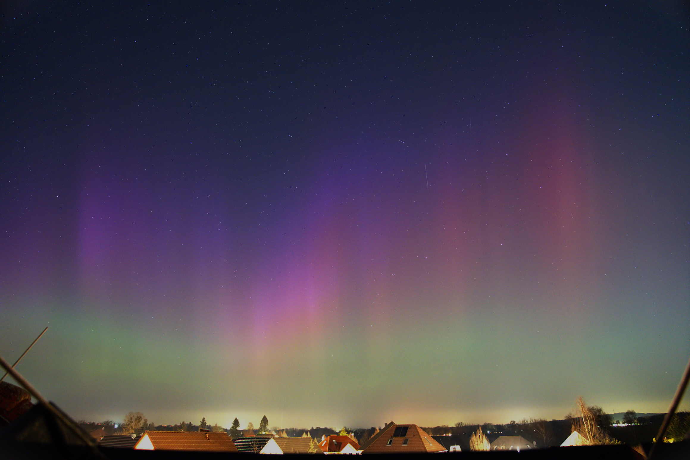 Ein eher seltenes astrophysikalisches Ereignis in unseren Breiten. Ursache war ein koronaler Massenauswurf (CME) aus der Sonne, ca 1,5 Tage vorher. Das Sonnenplasma, hautsächlich Wasserstoffkerne und Elektronen, verursachten nach dem Erreichen unserer Atmosphäre, einen geomagnetischen Sturm der zweithöchsten Klasse G4 mit kräftigen Polarlichtern. Eine diesbezüglich empfehlenswerte, sehr informative und ständig aktuelle Vorhersagequelle finden sie hier: Space Weather Prediction Center